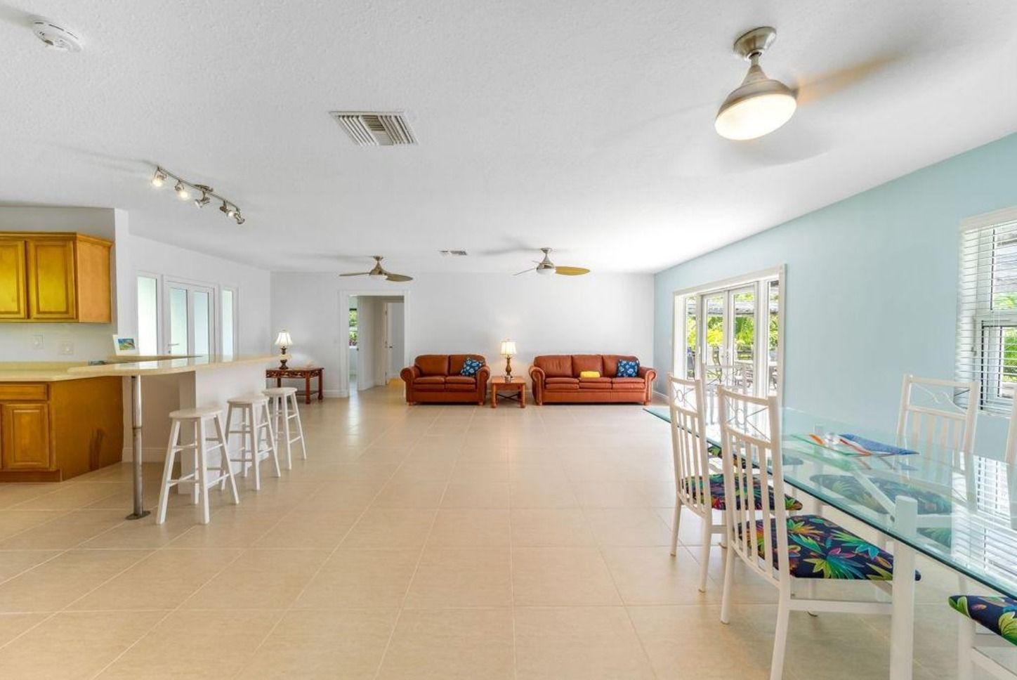 Enjoy a peaceful canal-front escape in Colony Bay, perfect for boating, fishing, and relaxation. This 2-bedroom, 2-bath home features an open layout with canal and garden views, a well-equipped kitchen, and a back deck ideal for outdoor dining. The property is a boaterâs dream, featuring a private dock with a boat lift, fish-cleaning table, and a serene gazebo. The lush yard with tropical fruit trees completes this island retreat. Families are welcome (kids allowed), however, no pets are permitted.