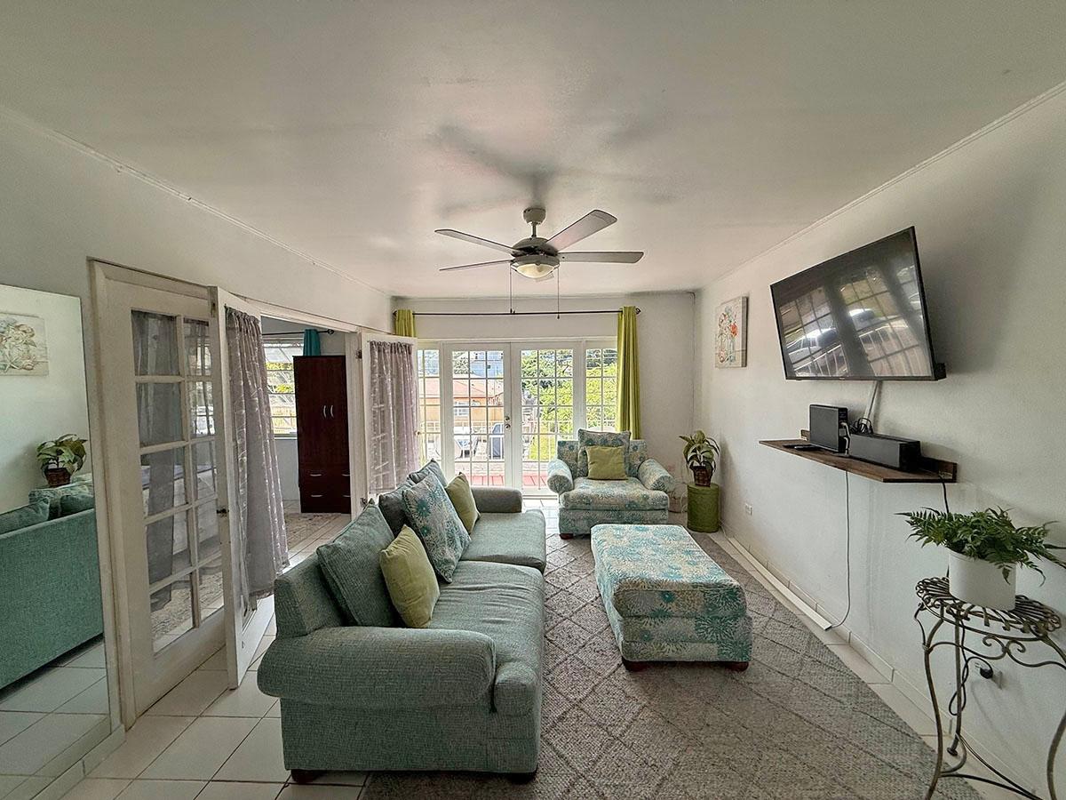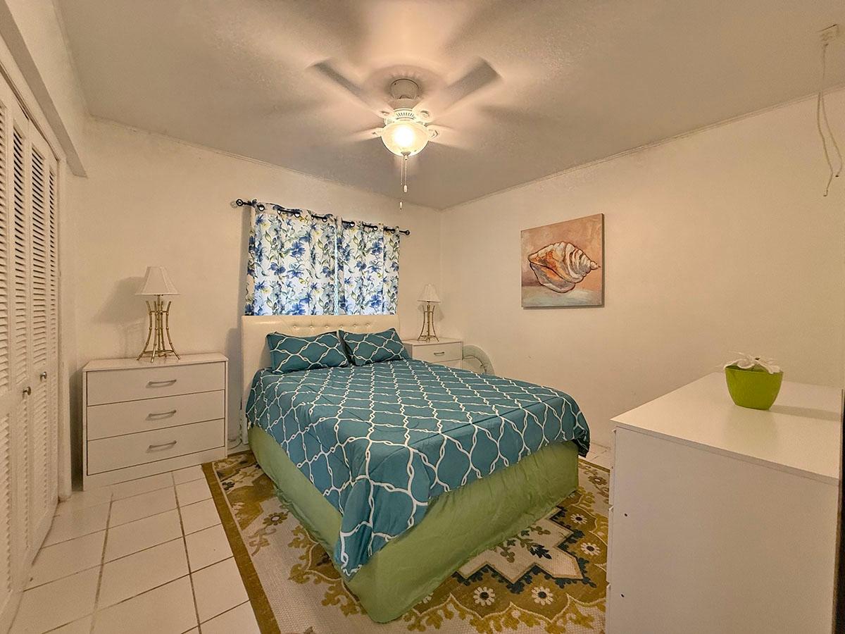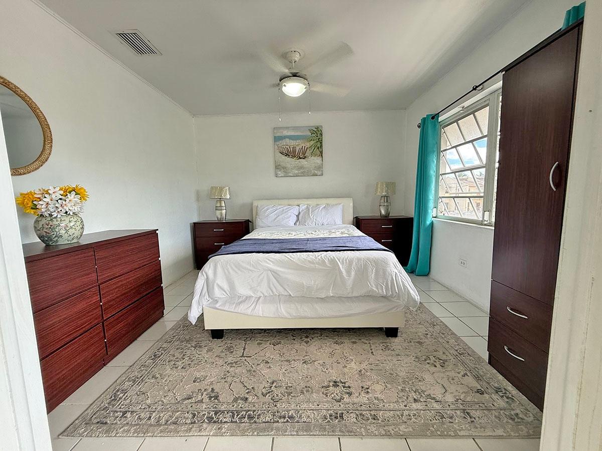 Fully furnished and move-in ready, this charming 2-bedroom, 1-bathroom second-floor condominium offers 720 sq. ft. of comfortable living in the quiet High Vista neighborhood, just off Eastern Road. Nestled on a peaceful cul-de-sac, the unit features key-gated entry for added security and privacy. Inside, youâll find central air-conditioning, ceiling fans, and a functional kitchen with a convenient breakfast counterâperfect for casual dining. Elegant double French-style doors open to the primary bedroom, adding character and natural light, while another set of French doors leads from the living room to a private balcony, creating a seamless indoor-outdoor flow. Residents enjoy access to a communal swimming pool, ideal for relaxing or entertaining. Water is included in the monthly rent, and clip-on hurricane shutters provide added peace of mind during storm season. This well-maintained rental offers comfort, security, and a tranquil lifestyle in a sought-after eastern location.