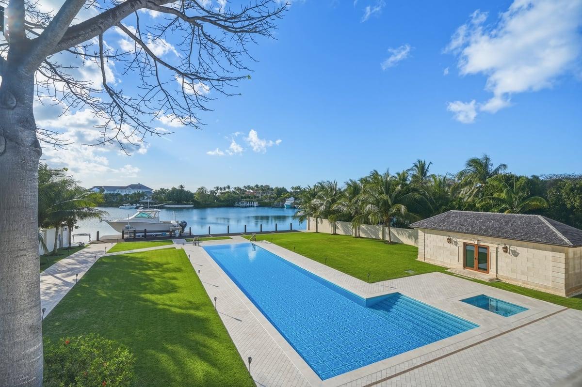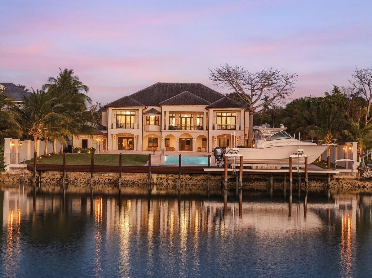 Perched above the widest part of the expansive canal system & walking distance to Old Fort Beach Club, this 9 Bedroom 14 Bathroom, 13,200 sq ft, palatial estate is a rare offering built by the owner to a standard of absolute perfection. The indoor spaces exude elegance & sophistication, while premium finishes, including hand chosen Italian marble, adorn every space. 1 acre+ of meticulously landscaped gardens with 125' of water frontage (105â Ipe Dock w/ 55,000 lb HD Boat Lift), the outdoor spaces include 2300 sq ft of covered terraces with dramatic views of an Olympic size pool in shimmering mosaics from Bisazza Tile. A Northwestern exposure brings sunsets to life every evening, framed by a magnificent silk cotton tree anchoring the property, bringing warmth and charm to this sprawling estate. Noteworthy amenities: Highest quality appliances, 26 SEER AC system w/ fresh air recuperation system, private water supply w/ cistern, SS pumps, standby generator, walled & gated.