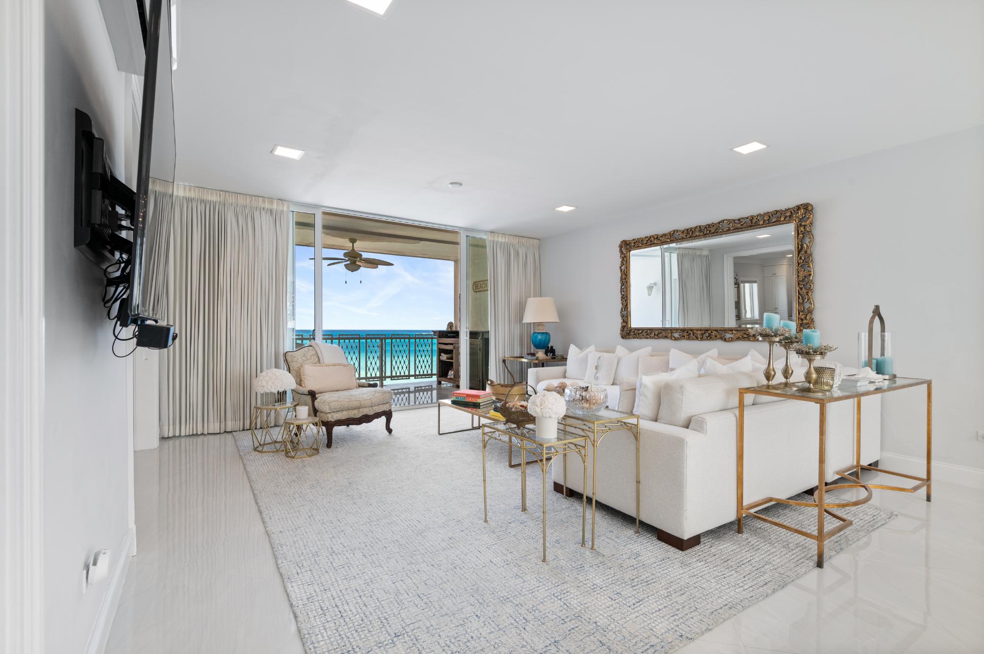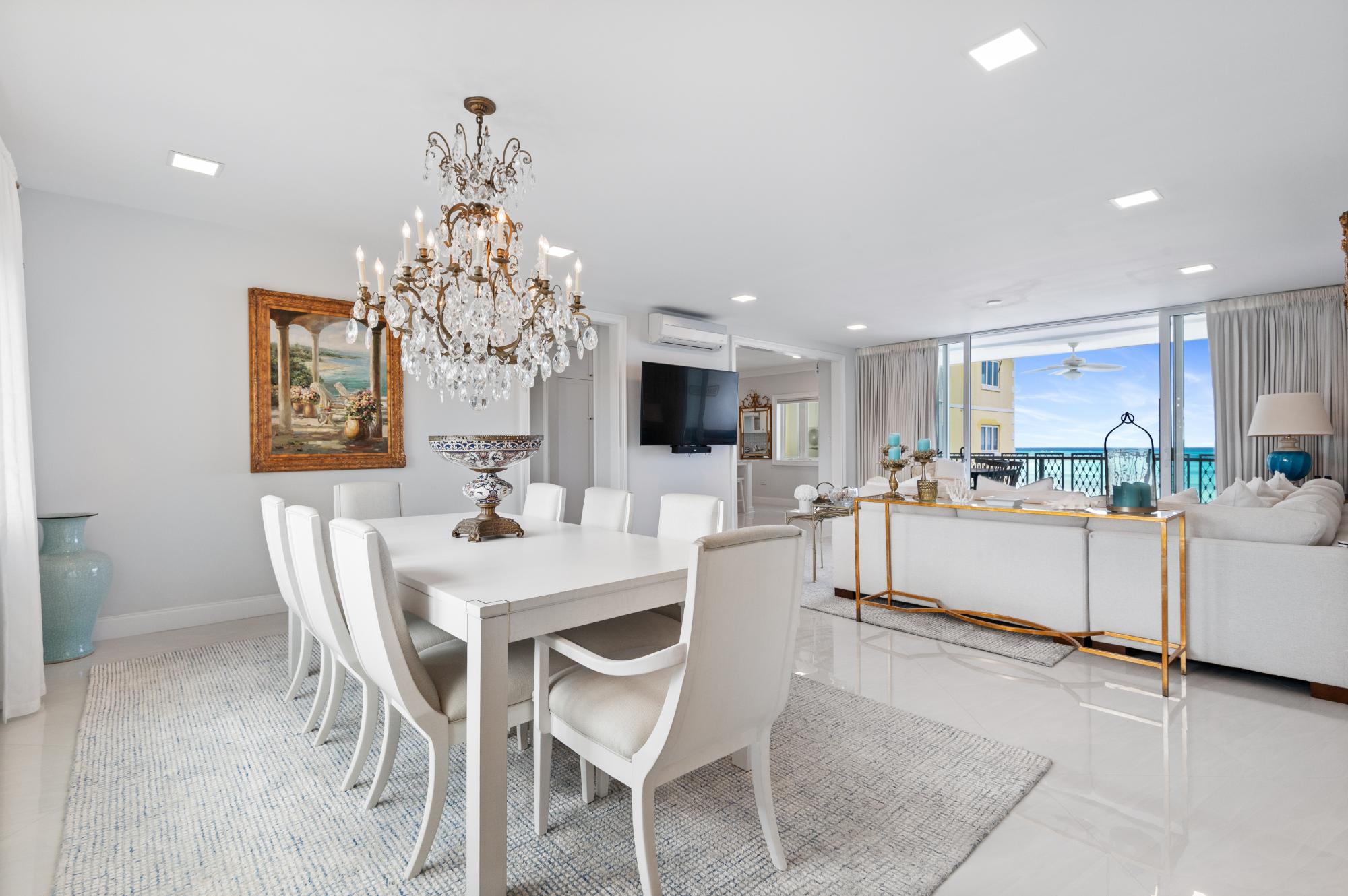 This exquisite condominium offers the endless azure of the ocean and natural light. A turn-key, fully furnished 4th floor condo, which exudes charm and pure elegance that are unmatched. Itsâ footprint comprises of gracefully designed spaces extending over 2,700 sq. ft. and encompasses 3 beds 3.5 baths. A fully equipped open-concept kitchen with white marble countertops and modern appliances flows into a luxurious living area that extends to a spacious dining roomâall designed for effortless entertaining and unparalleled comfort. Calming, fresh breeze and spectacular ocean views from the balcony offer a fusion of serenity and tranquility. A bonus office space, fully equipped, is also included. Amenities within the exclusive waterfront gated community include private security, beach access, a ground floor pool, a tennis court, a backup generator, a washer and dryer and an assigned parking space. Most major conveniences, such as grocery stores, premium restaurants, schools, airports, movie theatre etc., are in close proximity, curating seamless everyday living.