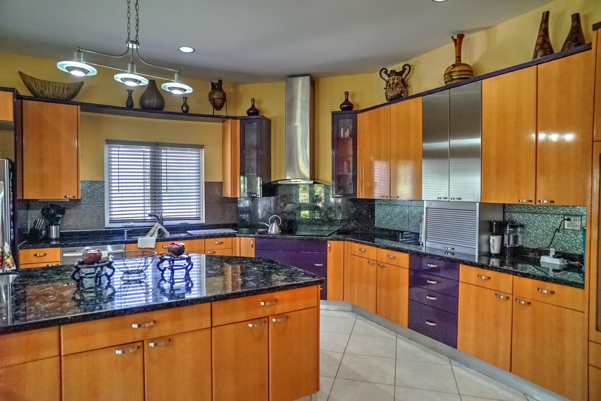This Beautiful custom-built home offers three spacious bedrooms, two full bathrooms, and a convenient powder room downstairs; perfect for comfortable family living and entertainment. As you enter the foyer, your are greeted by impressive high ceilings and a bright, spacious living room overlooking the lush back garden. The private garden features mature native fruit trees, including avocado, mango and scarlet plum; creating a peaceful outdoor retreat. The home also include a cozy TV room located just off the kitchen and dining area. The modern kitchen features stainless steel appliances, maple and stainless steel cabinetry and elegant granite countertops. Additional conveniences include a laundry room and a two-car garage. Amenities include a standby generator, security system and camera monitoring system for added comfort and peace of mind.