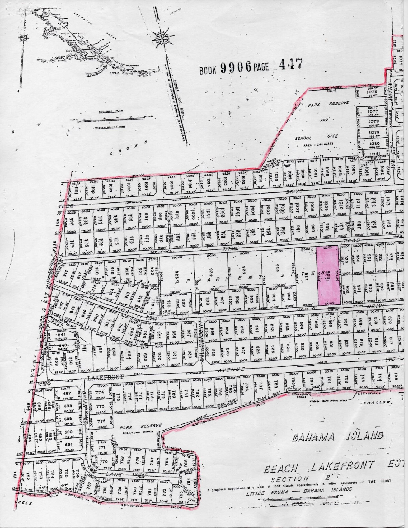 - Legal Description: Lot 928 Bahama Island Beach, Section 2, Exuma - 40,196 sq.ft.