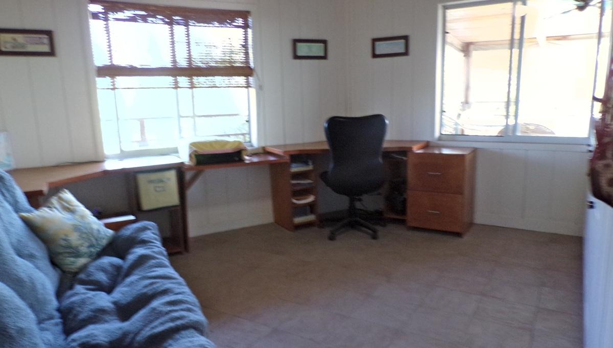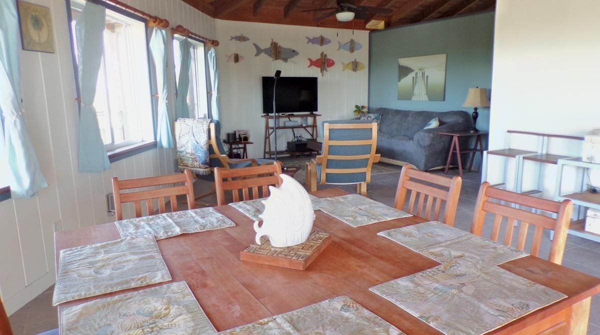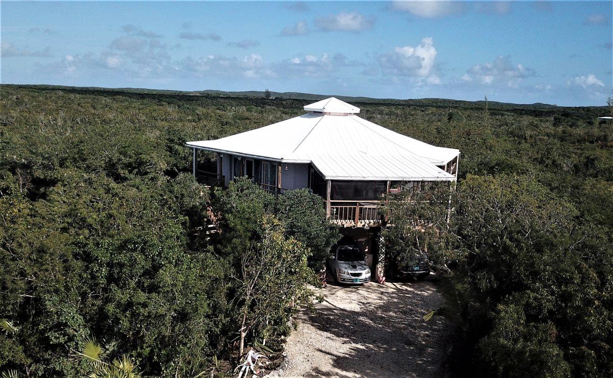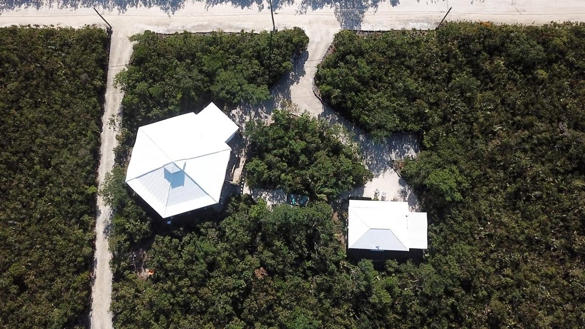 This spacious home along with a guest cottage sits in a tropical low maintenance setting with walkways between the homes where there is a hidden sundeck and garden area. This is a custom built 6-sided raised home with 360 degree views of the surrounding area including water and sunrise/sunset views. There are 2 bedrooms, 2 bathrooms, office/extra bedroom with an open plan Kitchen, dining and living room. Ceilings are open beam with a windowed cupola, and ceiling fans. A screened in area with plenty of seating, an outdoor bar and a 7 person hot tub sits in the perfect location for the right mix of sun, shade and breeze. The ground level has a 2-car covered carport, with an additional 1,200 sq. ft. workshop, mechanicals, laundry, a bonus room with 1/2 bath. There is an 18,000 gallon cistern with plenty of storage above. The guest cottage is 600 sq. ft. with 1 bedroom, 1 bathroom, an open kitchen, dinning and living room. A screened front porch for enjoying the tropical breeze while relaxing in your hammock. There is also an outdoor shower and a 5,000 gallon cistern.