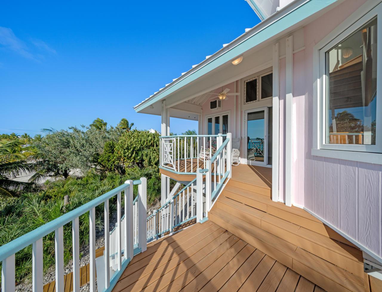 This gorgeous beachfront home is immediately adjacent to the Chub Cay Club. The property has unobstructed views of the ocean on the south side and the house is located at the southern end of a gorgeous beach with 100 feet of frontage. The main house is elevated with amazing views of the marina to the north and of the crystal-clear blue waters to the south. The home has 3 levels with a self-contained efficiency on the lower level as well as a garage and workshop. The main floor comprises the master bedroom and bathroom, a second bathroom, a den, the dining room and kitchen -with covered porches on two sides. The top floor has a loft/office and a potential third bedroom. The house is built on one of the highest points of the island on coral rock. The foundation is concrete pilings and steel rebar drilled 3 feet into the coral rock, making it one of the safest homes on Chub Cay. The home has impact hurricane resistant windows in the main house and the cottage. The adjacent guest cottage has 2 bedrooms, 1 bathroom and a combined living/dining room/kitchen.