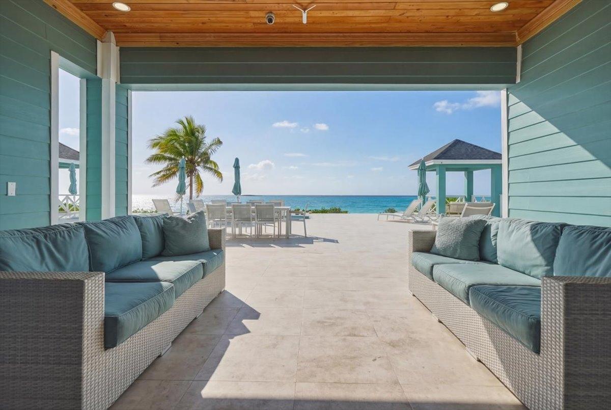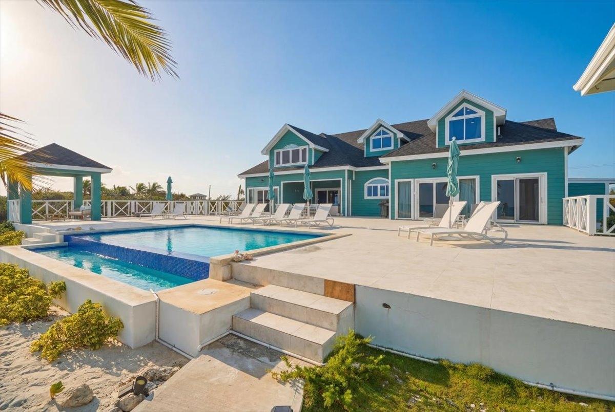 Welcome to a stunning oceanfront retreat on the beautiful island of Exuma, where relaxed island living meets breathtaking natural beauty. Perched at over 25 feet of elevation with 83 feet of ocean frontage, this exceptional property enjoys sweeping panoramic views of the turquoise waters that make the Bahamas world-renowned. This thoughtfully designed 4,800 sq. ft. villa features six spacious bedrooms and 4.5 bathrooms, offering ample space for family and guests. Light-filled interiors showcase open-concept living areas, elegant finishes, and large windows that frame the surrounding seascape. The expansive outdoor living area is a true highlight, featuring a large pool and generous terrace ideal for entertaining, relaxing, and enjoying the island lifestyle. The property also offers direct ocean access with steps leading into the crystal-clear waters, along with a natural shoreline of sandy areas and rock formations. Ideal as a private vacation retreat or income-producing rental property in one of Exumaâs most desirable locations.