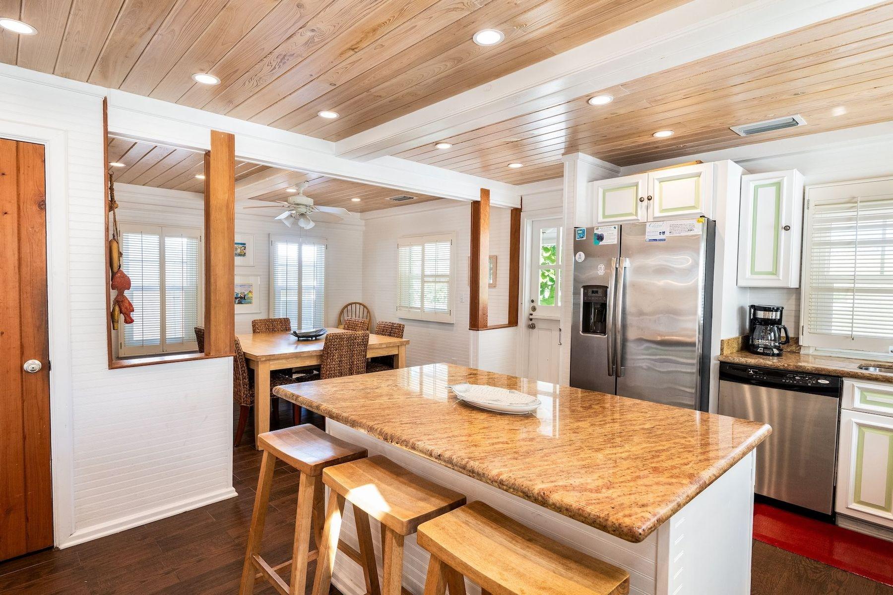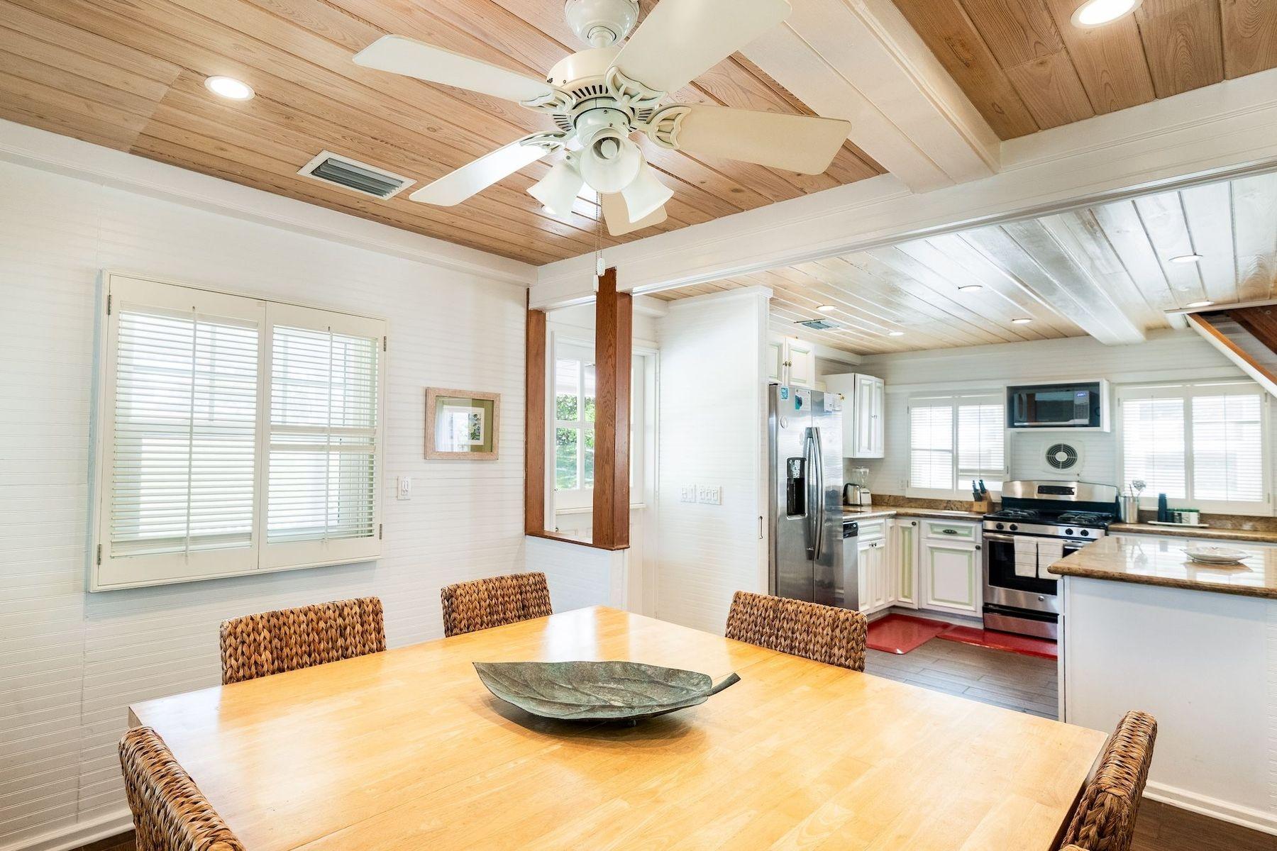 Experience the timeless appeal of Green Shutters, a restored 19th-century cottage with separate guesthouse in the heart of Hope Town on sought-after Elbow Cay. Just steps from Atlantic Beach, shops, dining, and public dockage, this prime location offers effortless access to the best of the settlement. The property features four bedrooms and three-and-a-half baths across two residences. The main house includes a welcoming front porch, open-concept living, two main-level bedrooms, and a charming loft retreat with private bath. The fully equipped kitchen boasts granite countertops, stainless steel appliances, and a breakfast bar. A private one-bedroom guesthouse with ensuite provides added flexibility for guests or extended family. A generator ensures comfort and peace of mind. Beautifully blending historic character with modern convenience, Green Shutters presents a rare opportunity to enjoy authentic island living in an exceptional setting.