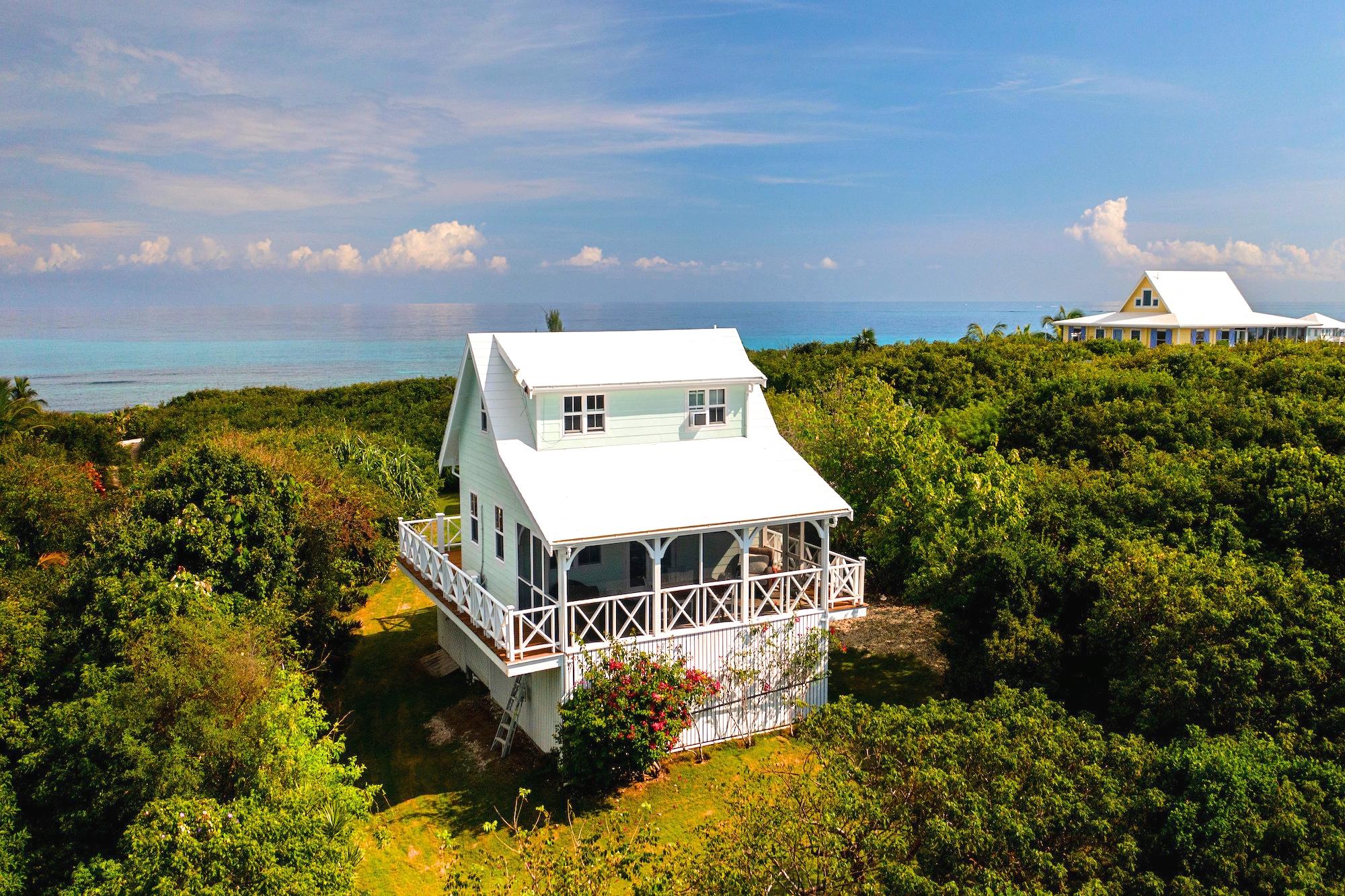 Welcome to your Bahamas getaway: Gumbo Limbo, a charming cottage nestled in the serene South End area of Great Guana Cay, Abaco. This delightful 900 sq.ft., 2-bedroom, 1-bath retreat offers a peaceful coastal lifestyle with breathtaking views of the Atlantic Ocean and the Sea of Abaco. Situated atop a 40-foot elevation, Gumbo Limbo provides a sense of tranquility and privacy. As you approach the cottage, you'll be captivated by the lush tropical surroundings and the gentle ocean breeze. Step inside to discover cozy and well-maintained living spaces, accented by custom mahogany millwork, creating a warm and inviting atmosphere. Natural light streams through the windows, illuminating the space and showcasing the picturesque views beyond. The cottage boasts a screened porch where you can relax and savor the soothing sounds of nature. This outdoor oasis is the perfect spot for morning coffee or evening gatherings with friends and family. Take in the stunning sunrises over the Atlantic Ocean or enjoy the vibrant colors of the sunset over the Sea of Abaco â the choice is yours.