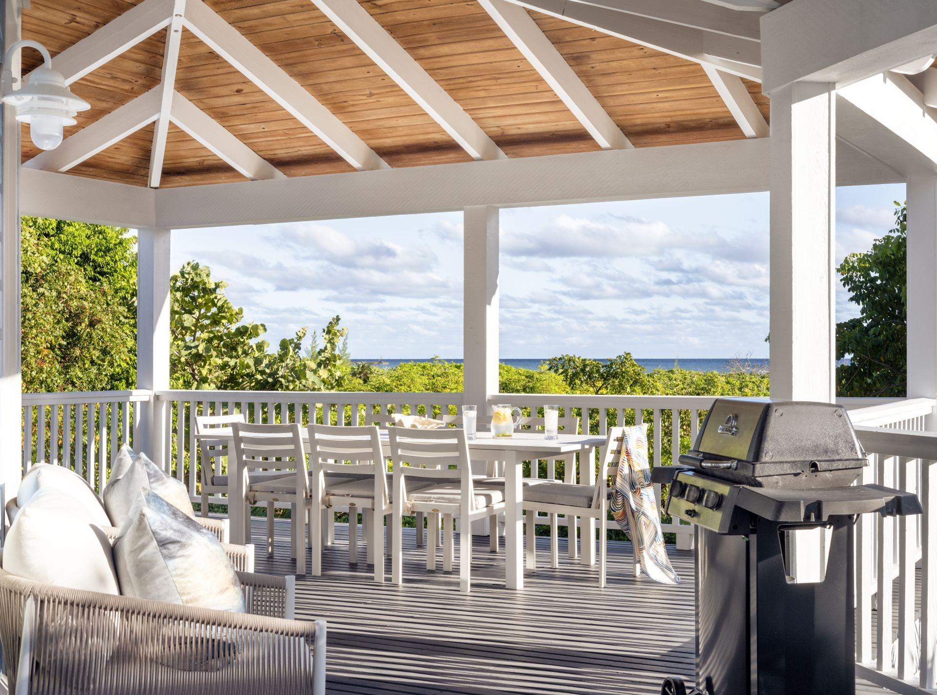 Beautifully landscaped gardens on either side of the driveway lead to Jumentos, a spectacular and luxurious four-bedroom beachfront estate with a private pool. Extensively covered decks extend from the great room, while each bedroom overlooks the pool and frames breathtaking views of the beach and ocean beyond. Set on an exceptional 1.5-acre beachfront parcel, Jumentos, Lot 33 at The Abaco Club on Winding Bay is perfectly positioned along miles of pristine white-sand shoreline. From the moment you step through the double French doors, sweeping aquamarine hues of Winding Bay pour in through expansive picture windows, creating a seamless connection to the surrounding seascape. Just inside the entrance, a staircase leads to the second-floor observatory level, offering stunning 360-degree views of the beach, Winding Bay, and the golf course. The heart of the home is an open-plan great room, newly updated with fresh furnishings, bedding, and accessories. The décor is refined yet relaxed, featuring soothing tones of aqua and beige that complement the coastal setting.