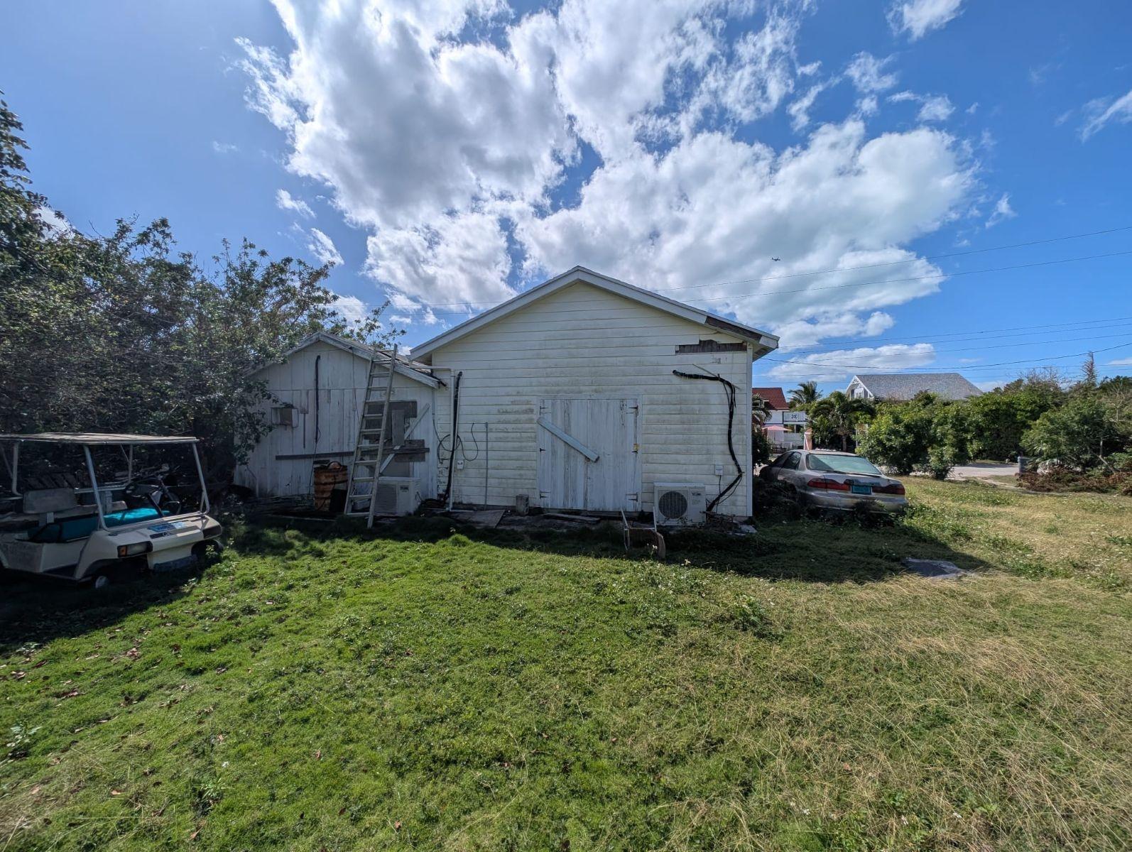 15,465 sf lot in Whitesound with four structures. They are 629 sq. ft. of open space with a two-piece bathroom; 722 sq. ft. with 2 bedrooms and 1 bathroom; and 248 sq. ft. of open space with a bathroom. There is a 223 sq. ft. storage shed. They did not restore these structures after Hurricane Dorian. The property is between the main road and the old ocean road in Whitesound. The development possibilities make this property a strategic investment in Elbow Cay's future growth.