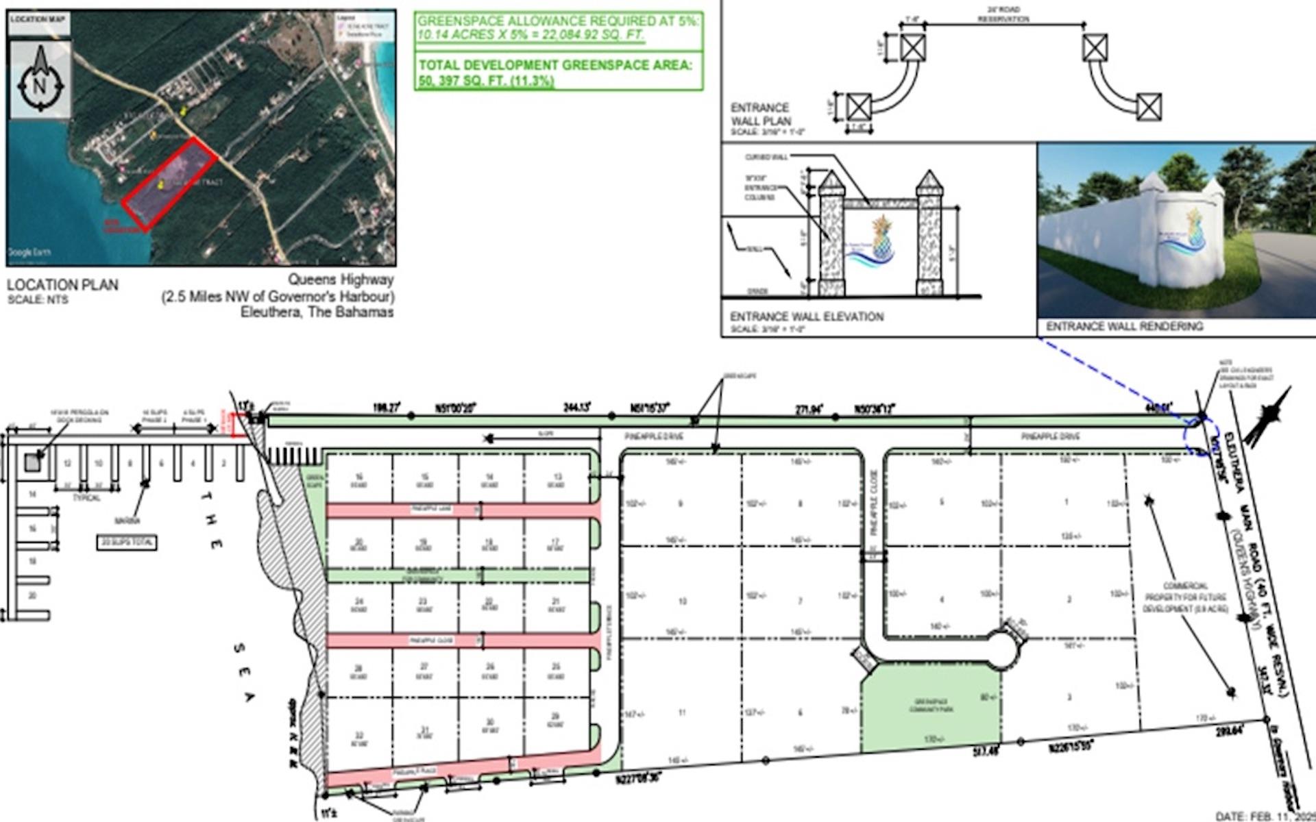 This prime 10.14-acre oceanfront parcel is located on the southern side of Queens Highway, approximately 2.5 miles northwest of Governors Harbour, Eleuthera. Architectural and Engineering plans are available for the development if desired. Existing structure on site for future development use. The proposed layout includes 31 residential lots, a residents' park, and a 1-acre commercial lot along Queens Highway, offering an excellent investment opportunity!