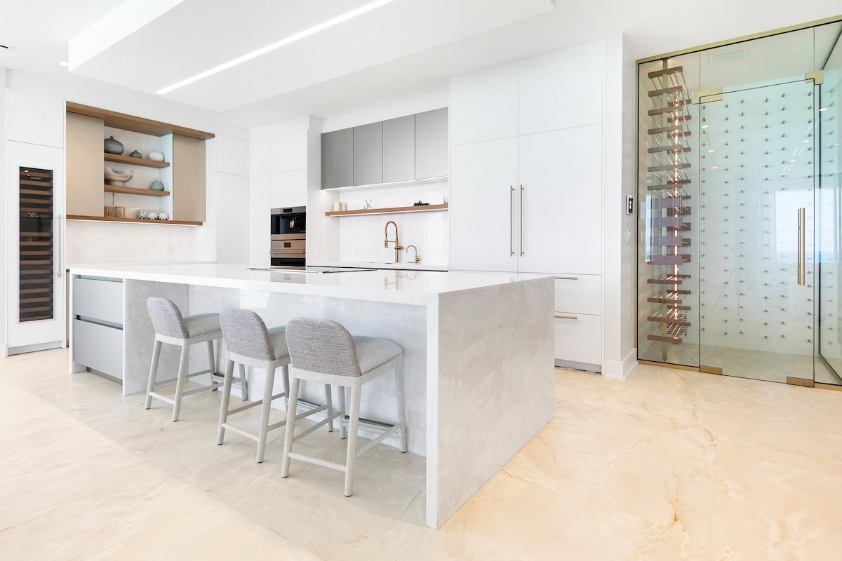 Introducing Penthouse 2 in Aqualina, a remarkable residence just a short stroll from the iconic Baha Mar resort, offering an unparalleled blend of luxury and convenience. This one-of-a-kind penthouse features four spacious bedrooms and a private movie theater that sets the stage for unforgettable entertainment. The property boasts hurricane-rated floor-to-ceiling patio doors and windows capable of withstanding winds up to 180 mph, complemented by solid core interior doors and exquisite custom trim throughout. With soaring 9â6â ceilings, all LED lighting, and elegant porcelain flooring extending inside and out, every detail has been meticulously crafted for both style and comfort. The gourmet kitchen, complete with European custom cabinetry and top-of-the-line Wolf and Sub-Zero appliances, along with a 200-bottle wine cellar, elevates the culinary experience. Offering breathtaking ocean views, private elevator access, and world-class amenitiesâincluding a state-of-the-art gym, padel court, pool, private beach, and dock