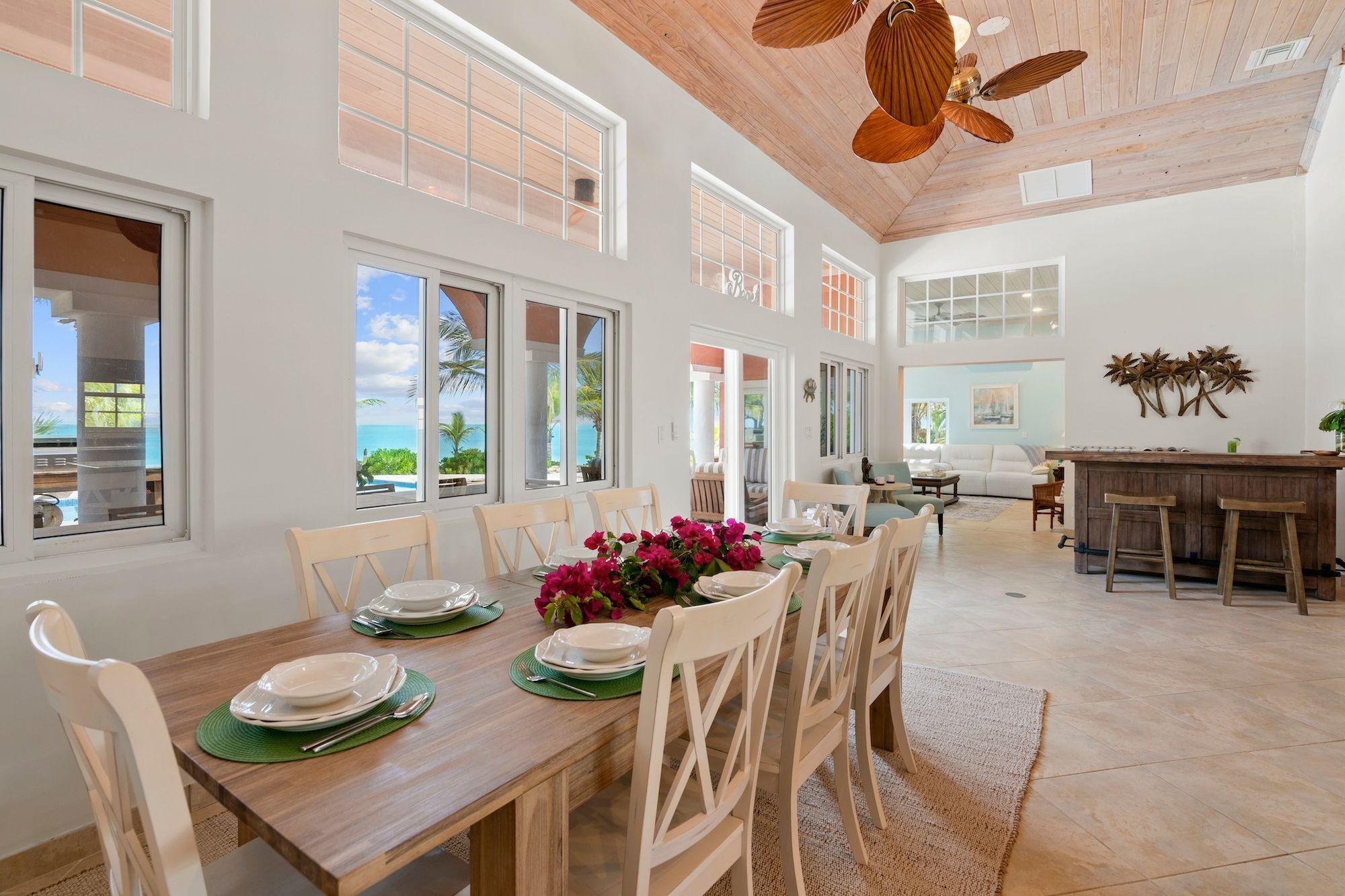 Sandcastle House is a 3,650 sq ft beachfront home set on a 23,551 sq ft lot, surrounded by lush palms and stunning ocean views. With 6 bedrooms and 5 bathrooms, it is ideal for large families or as a strong vacation rental investment. The open-concept interior features high ceilings, a bright dining area, a granite-top kitchen island, a fully equipped kitchen, and an indoor bar perfect for entertaining. Designed for seamless indoor-outdoor living, the home offers a spacious deck with a heated pool, swim-up bar, covered seating, and outdoor dining, all just steps from a pristine private beach with powder-soft sand and crystal-clear waters. The primary suite includes a spa-style bathroom, while additional bedrooms are generously sized and beautifully finished. Located in Great Exuma near George Town and just a 5-minute drive from Exuma International Airport, this exceptional property offers both lifestyle and income potential.