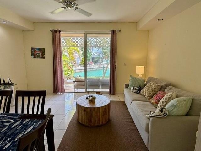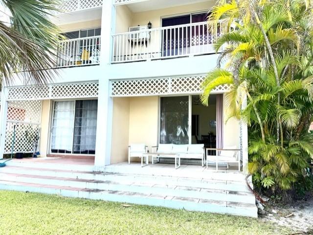 This delightful one bedroom, one bathroom, ground floor condominium has a private patio overlooking a beautiful grassy yard and the canal. Fully furnished and in excellent condition, features include a large living room with ceiling-height sliding glass doors, a serve-through kitchen with washer and dryer and a large bedroom with wood floors. Additional amenities include split-system air conditioning and recessed lighting. Sandyport is a luxury gated community comprising single family houses, apartments and townhouse buildings all built in the colonial design. Amenities include landscaped gardens, swimming pools, hard-surfaced tennis courts, 24-hour security with gated main entrance, parking spaces for all townhouses, bulk headed canal system in front of each townhouse with a 6-foot depth, and a private beach on the northern side of the Sandyport Bridge. Sandyport is ideally located close to all major support areas and a few minutes from the International Airport. This unit is the perfect spot for a young professional. Sorry, no pets allowed.