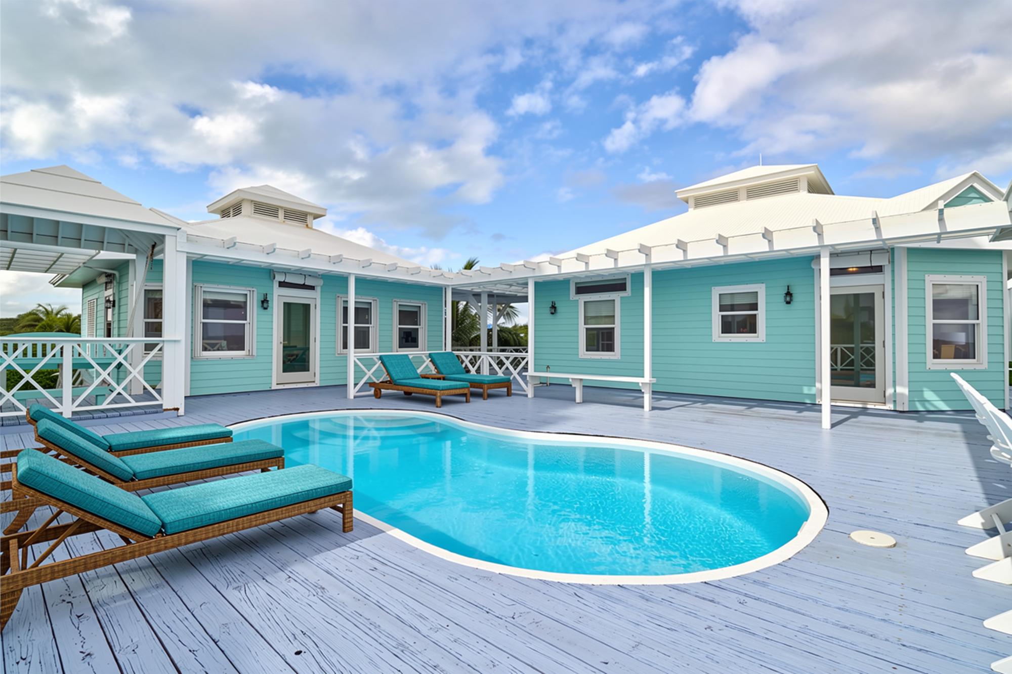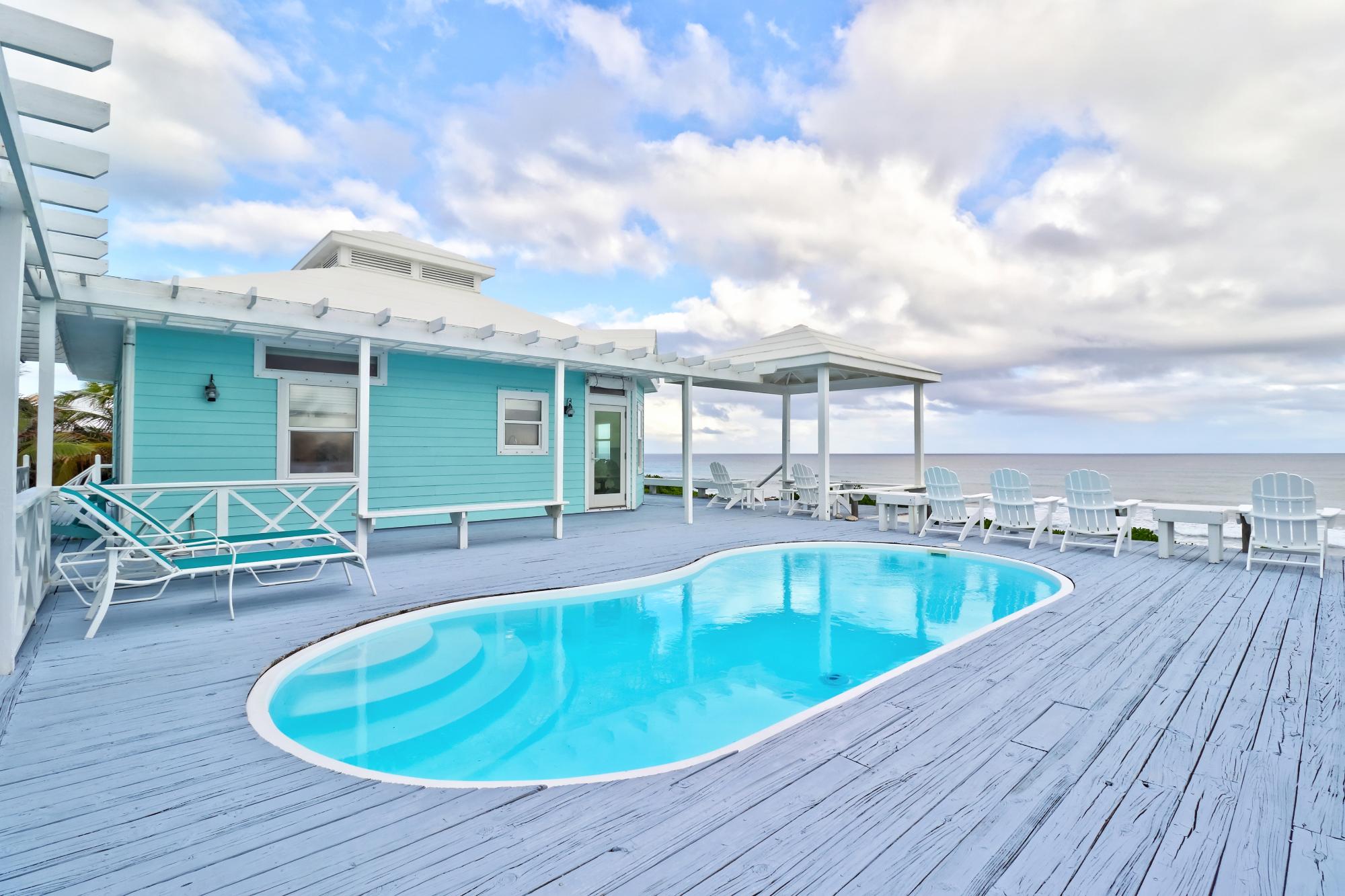 BEACH HOUSE WITH DOCK SLIP. Enjoy spectacular, head-on Atlantic Ocean views from this 3-bedroom, 4-bath pod-style beach cottage in the exclusive Dorros Cove Community on the southern shore of Elbow Cay, Abaco, Bahamas. Perfectly positioned on 109 feet of elevated oceanfront with direct beach access, the property also includes a private boat slip at the Dorros Cove Dock. All interiors have undergone a full renovation by Susan Thompson of Greenleaf Designs. The main pod offers a functional galley kitchen, round-table dining, cozy living area, two guest bedrooms, and two baths, all with a chic island vibe! A separate 576-sq-ft primary suite is connected by covered breezeways and an expansive patio with swimming pool. . It is a retreat of its own with cozy lounge, kitchenette, and laundry room. The ground level (506 sf) provides a two-golf-cart garage, additional laundry, bathroom, and ample storage. Additional features include a backup generator and beach steps. Walking distance to Tahiti Beach and a 15-minute golf-cart ride to historic Hope Town.