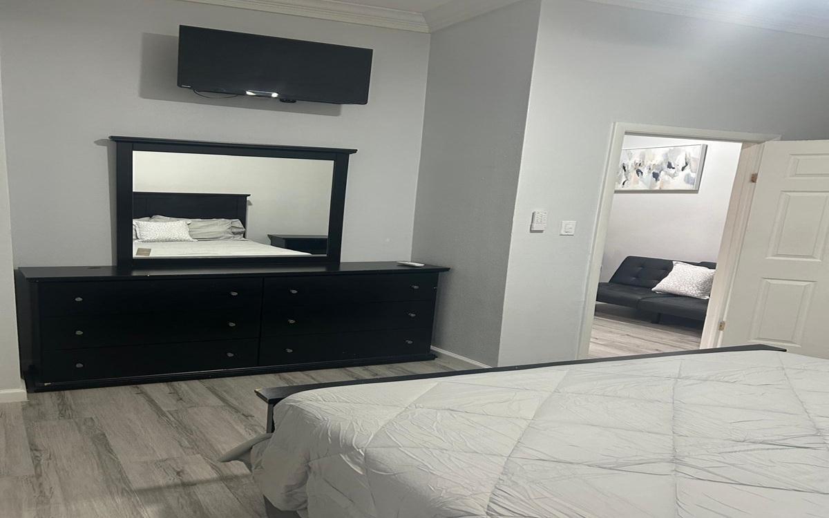Located within the secure, gated community of Venice Bay, this beautifully designed 1-bedroom, 1-bathroom home offers approximately 400 sq ft (396 sq ft) of modern living space. Built in 2025, the unit showcases a sleek gray-and-white aesthetic complemented by elegant quartz countertops and a full suite of General Electric appliances, including a fridge, stove, and microwave. The thoughtfully designed layout features a comfortable living area with a 50-inch TV, as well as a private en-suite bedroom complete with its own personal television for added comfort and convenience. Utilities and yard maintenance are included, providing a hassle-free lifestyle. Residents of Venice Bay also enjoy access to premium amenities such as a swimming pool and tennis court, all within a safe and well-maintained community supported by security cameras. Ideal for anyone seeking a stylish, low-maintenance home in a desirable gated neighborhood.