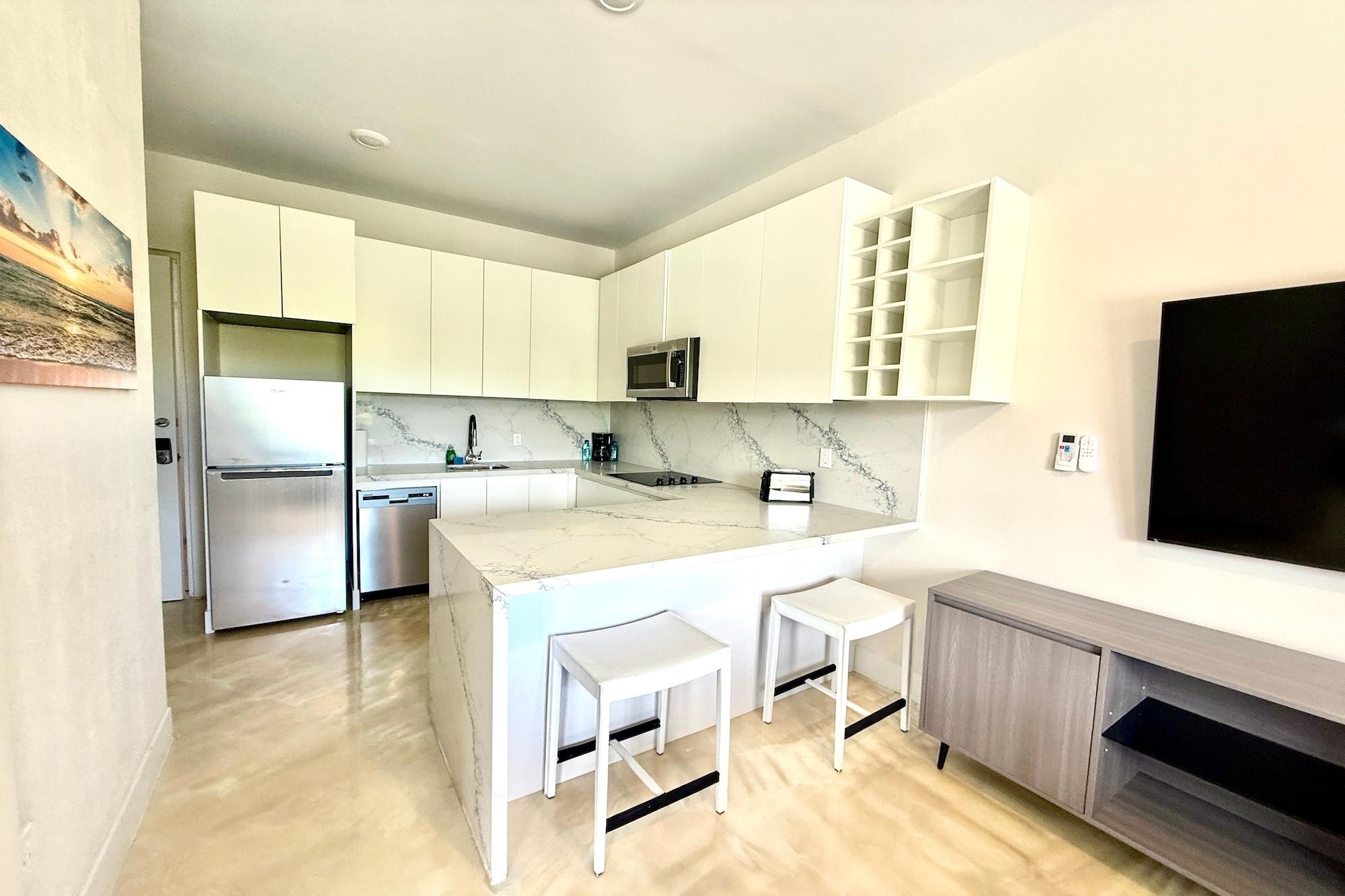 Welcome to a thoughtfully designed collection of brand-new studio residences, perfectly located in the popular western district of New Providence, just seconds from Old Fort Bay, Charlotteville, Lyford Cay, and the airport. Whether you're a working professional or someone who values a convenient and low-maintenance lifestyle on the west side of the island, these studios offer comfort, efficiency, and style in a well-connected setting. Signature Features Prime Location: Situated near gated communities, top schools, and everyday amenities Secure Access: Double-door entry with added security measures Utilities Included: Electricity, water, and internet, all wrapped into one simple monthly rate Turnkey Simplicity: Just bring your essentials, everything else is in place Smart, Stylish Interiors Ranging from 300 to 500 square feet, each unit is designed to make the most of its space with modern finishes and bright, open layouts. Large windows bring in natural light, and neutral palettes create a clean and calm living environment.