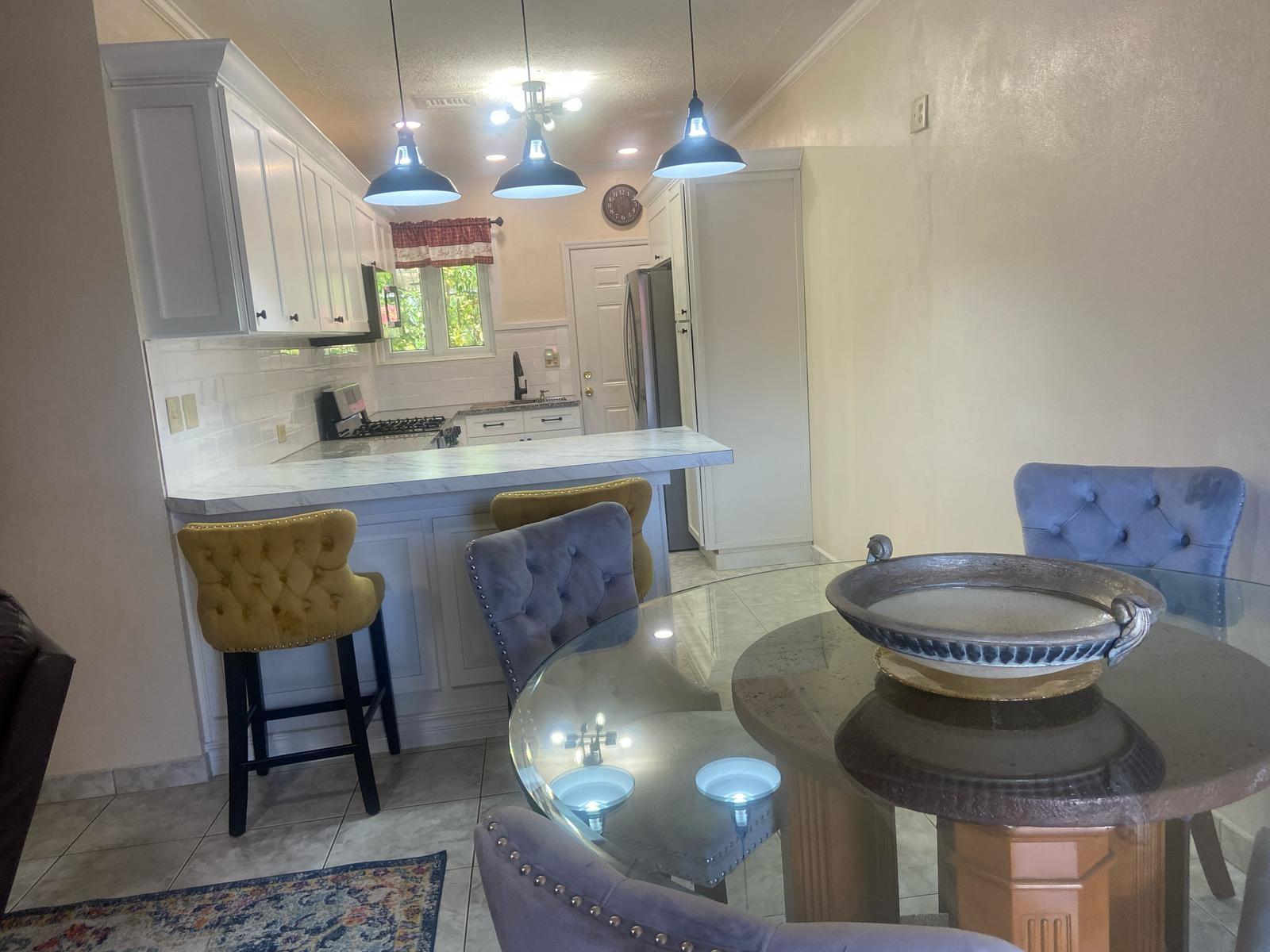 This charming 2 bed, 1 bath apartment is located on Yamacraw Hill road and is close to the beach! It features modern furnishings, two queen beds, storage closets, a spacious kitchen and breakfast bar, a double vanity in the bathroom, split AC units, and a washer and dryer, and it includes water. The exterior is welcoming, with patio furniture, tropical plants, and native trees. There is additional space at the rear of the property for entertaining or relaxing outdoors and designated parking at the front. Conveniently located adjacent to Port New Providence and a stone's throw away from Treasure Cove, Solomon's Fresh Market, private schools and churches. The unit is easily accessed from Prince Charles Drive or Eastern Road. Available for immediate occupancy, please call to schedule an appointment.